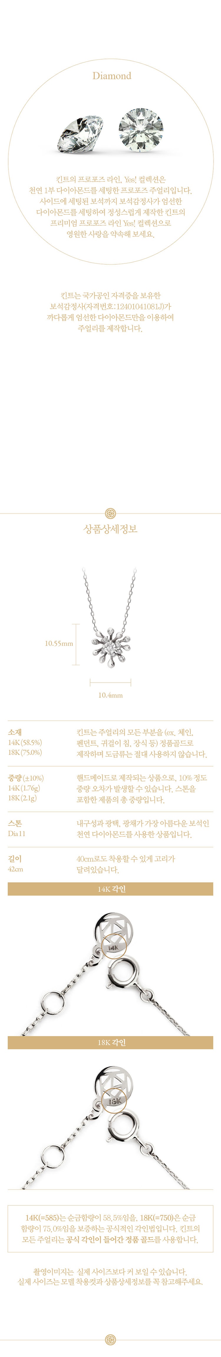 [õ¿¬ ´ÙÀ̾Ƹóµå] 14K 18K ÇØÇǴϽº 1ºÎ ´ÙÀ̾Ƹóµå ¸ñ°ÉÀÌ